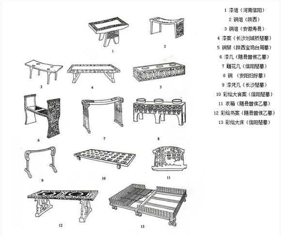 最早的夏商時期,其家具造型紋飾顯得原始古拙,質樸渾厚。這一時期出現的家具:青銅家具(如青銅俎)、石質家具(如石俎和漆木)、鑲嵌家具(如漆木抬盤)。由于當時人們存在濃厚的鬼神觀念,其裝飾紋樣往往有一種莊重、威嚴、兇猛之感。