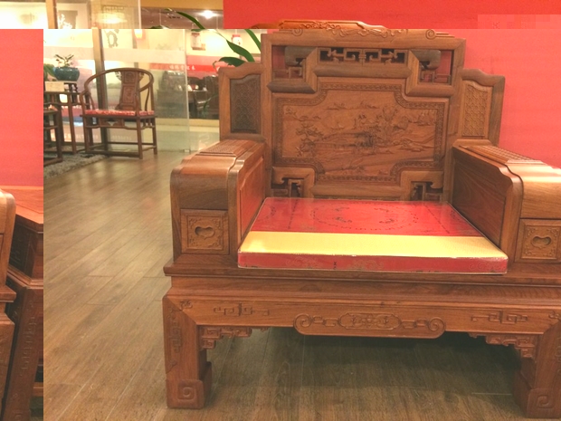 而今天,我們福林堂紅木要為大家介紹的這一款客廳系列的家居用品,也正是為了表達這一初衷和愿望,以之為名的——錦上添花沙發(fā)。好上加好的美好寓意,為你每一天的生活都增添色彩,妝點著幸福。該款沙發(fā)的靠背板處以及扶手的上方均富有寫實性的雕花,借以用來比喻“錦上添花”中的小花;而融合了文人墨士情趣的背靠板處的主體圖案“松柏樓臺庭宇遠山”圖更是為整體沙發(fā)營造出一種身臨其境的絕美意境,陶冶情操。沙發(fā)上隨處可見的回紋雕刻寓意復(fù)制綿延不絕,永傳后世。沙發(fā)的扶手略有不同,扶手處前方加有小抽斗,方便收納各類小物品。精細(xì)的雕刻加上流暢的線條,以及采用的優(yōu)質(zhì)緬花材質(zhì),使得沙發(fā)整體:凝重不失風(fēng)流,張揚不失穩(wěn)重,華麗不失身份,確實是為一處用來拿來裝點生活,留置家用,添備居所的良好家居用品。