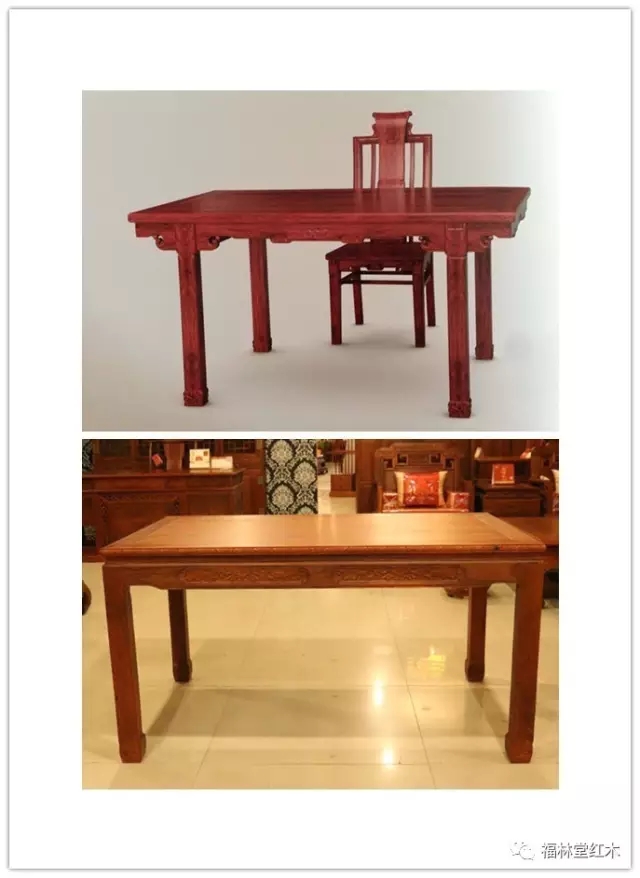 一、在形制上的區(qū)別:桌是四足頂住桌面四角的;案是四足內(nèi)縮進(jìn)來一部分的。下圖上半部分是案,下半部分是桌,可以仔細(xì)看看: