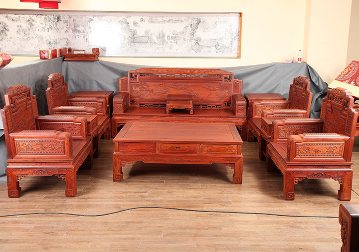 2010年12月5日,北京保利拍賣(mài)清代紫檀雕云龍紋寶座,成交價(jià)71,680,000元;2010年12月12日,南京正大拍賣(mài)明代黃花梨交椅,成交價(jià)69,440,000元;2013年6月4日北京保利,拍賣(mài)清代紫檀高浮雕九龍西番蓮紋頂箱式大四件柜,成交價(jià)93,150,000元……用了幾百年之后,還能動(dòng)輒賣(mài)到幾千萬(wàn)元,估計(jì)在家具里也就紅木家具能有此殊榮了。